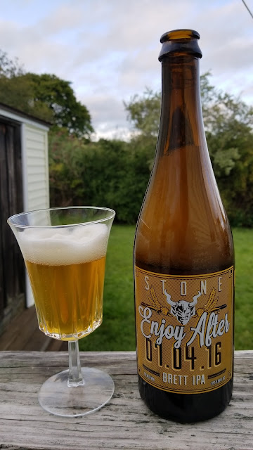 It's been a while since I reviewed a beer by Stone Brewing Co. (well, since March of this year at least) and I figured that a beach vacation is the perfect time to dig this out of the cellar. It's Stone's "Drink After 07.04.16", a 7.00% IPA made with Brettanomyces yeast.